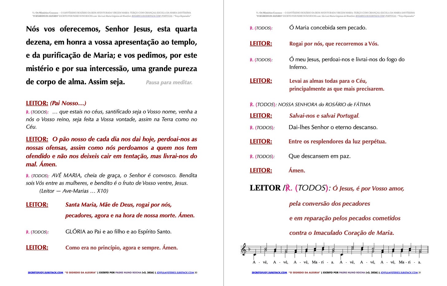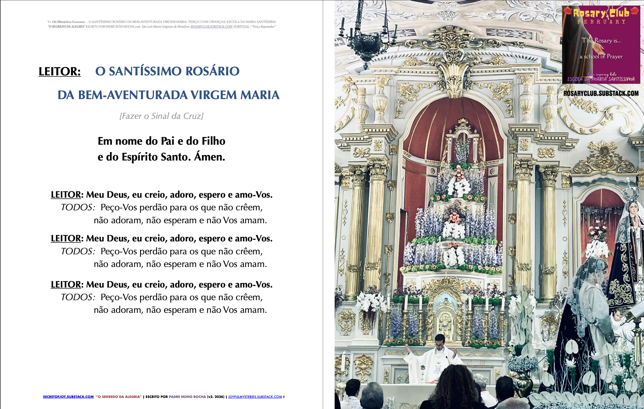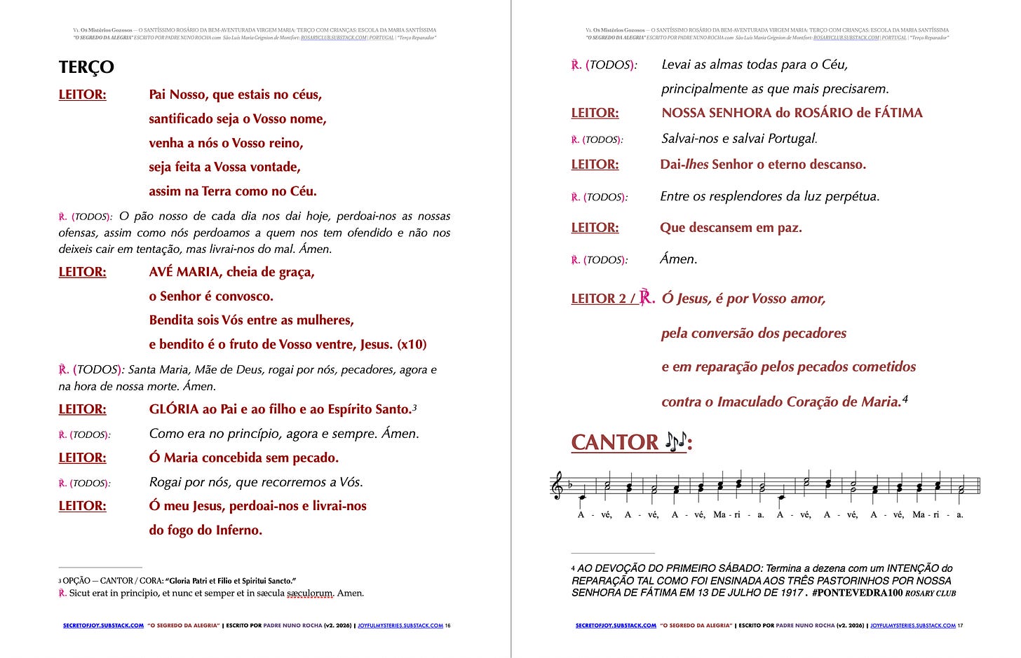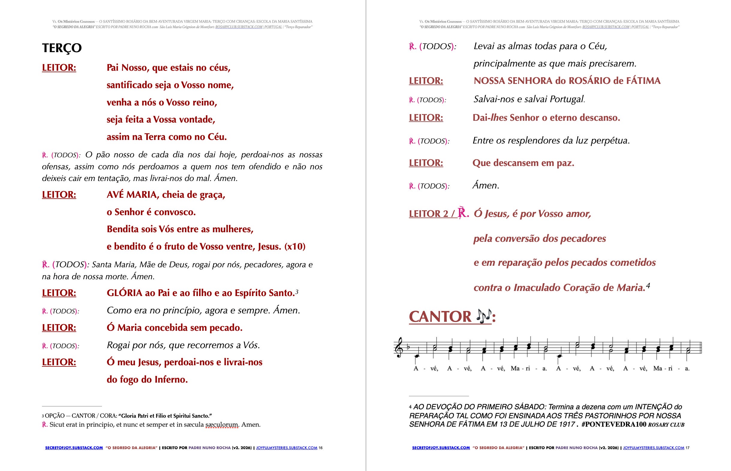 PAI NOSSO + 10 AVÉ MARIAS + GLÓRIA AO PAI + Ó MARIA CONCEBIDA + Ó MEU JESUS + “Ó Jesus, é por Vosso amor, pela conversão dos pecadores e em reparação pelos pecados cometidos contra o Imaculado Coração de Maria — #PONTEVEDRA100 ROSARYCLUB.SUBSTACK.COM | Escrituras do site do Magistério sobre o Rosário e Meditações citadas dos escritos de São Luís Maria de Montfort.